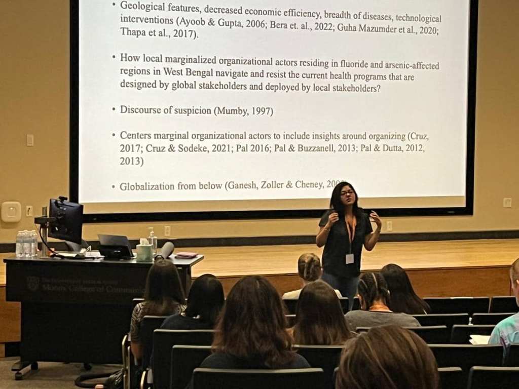 The above image captures me sharing my research at the Organizational Communication Mini Conference/OCMC 2022, University of Texas at Austin